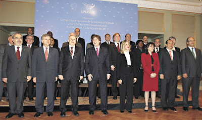 ¿Qué fue lo que cambió en tan pocos años como para que doce gobiernos de la región, desde Juan Manuel Santos y Sebastián Piñera, a Hugo Chávez y Evo Morales, puedan tener sentados a una misma mesa a sus ministros y autoridades monetarias para discutir un plan de acción común? Fundamentalmente, fue el efecto demostrativo que resulta hoy la crisis en los países centrales. Las políticas de mercado abierto a los capitales financieros demostró su falibilidad. Y hoy, gobiernos como el de Piñera, ubicados en el andarivel de derecha del espectro ideológico regional, recurren a medidas de resguardo restringiendo el ingreso de fondos especulativos a su país.